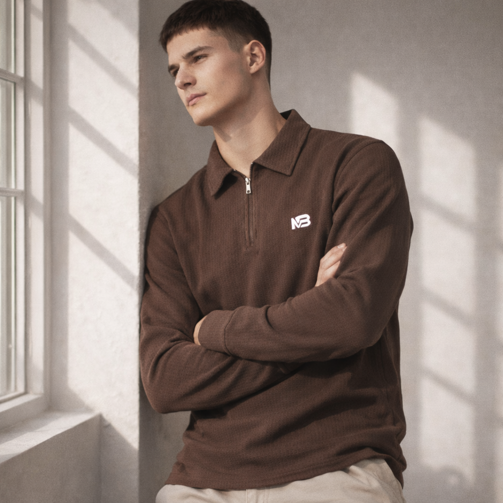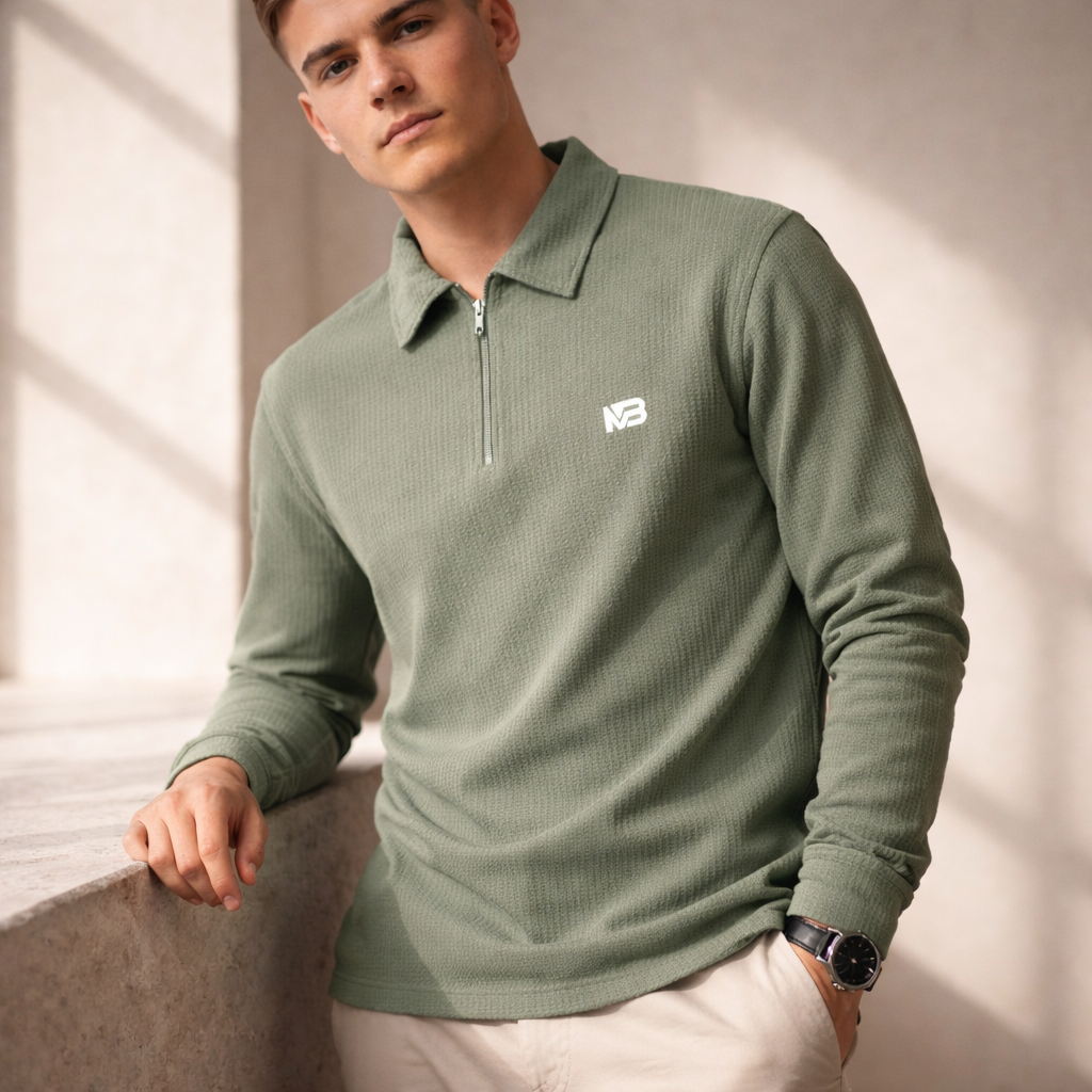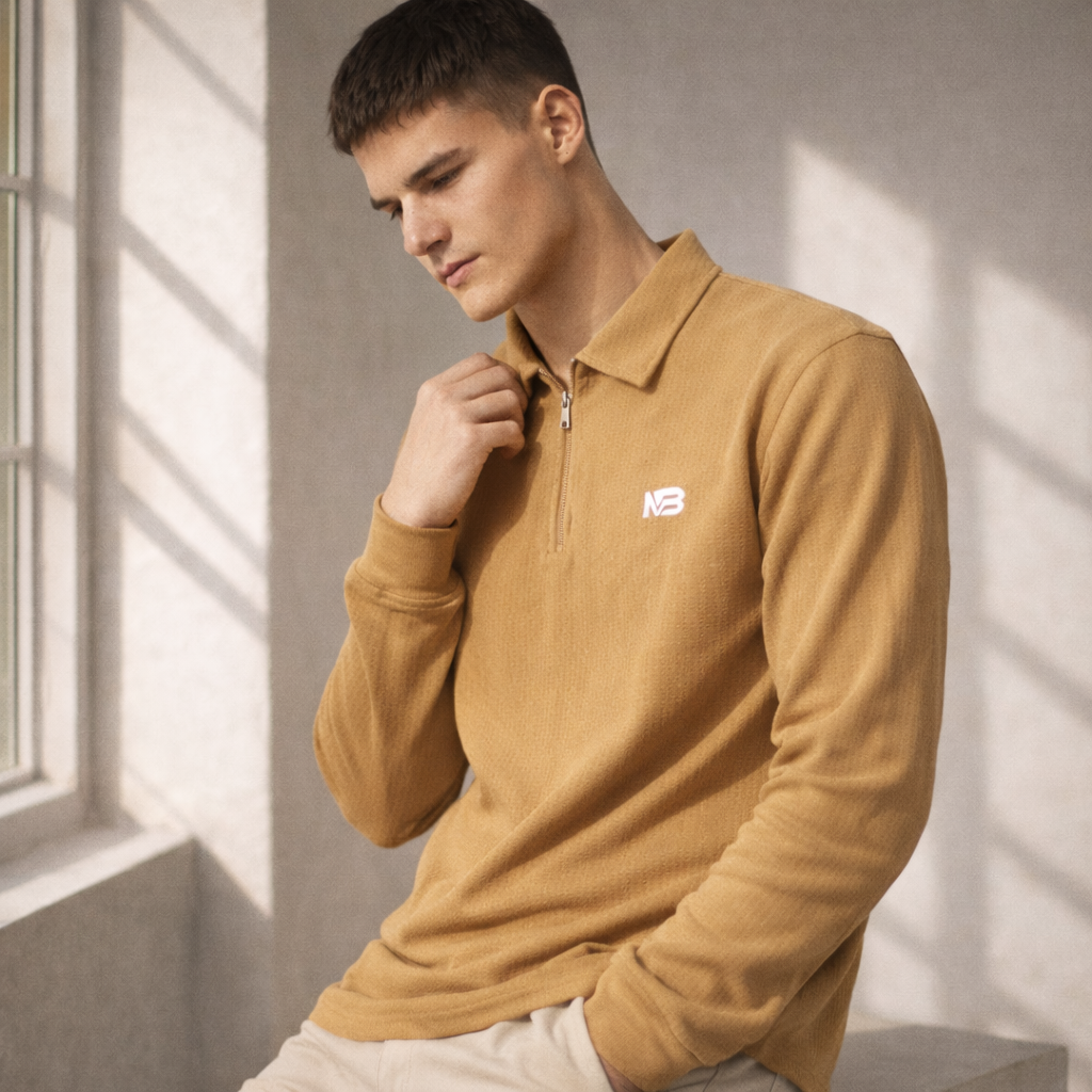 Elevate your casual and smart-casual attire with the Premium Peanut Fabric Full Sleeve T-Shirt with Zip & Collar. This shirt is crafted from a luxurious, textured ribbed knit fabric (often referred to as ‘peanut’ knit for its soft, slightly structured texture) that offers superior comfort, breathability, and a modern aesthetic. The long sleeves make it an ideal choice for cooler weather or for a sophisticated layered look.
