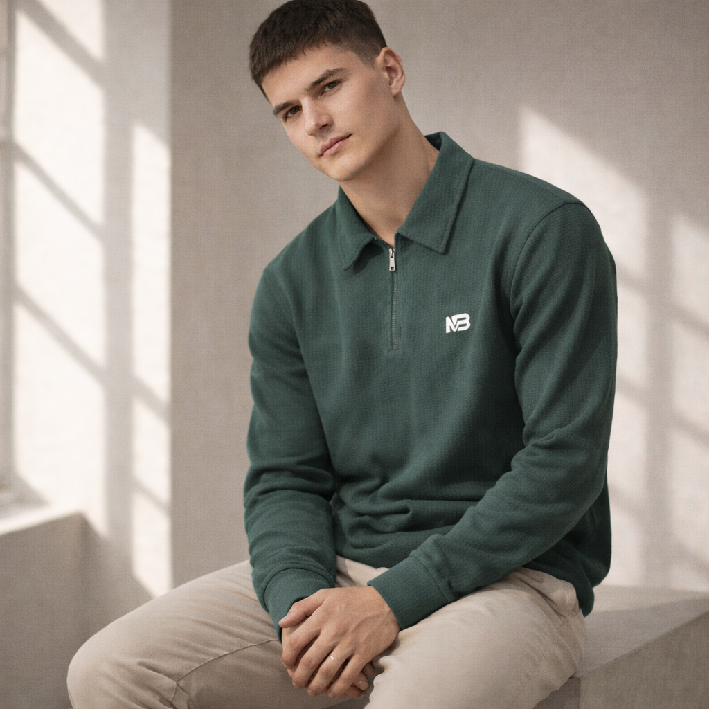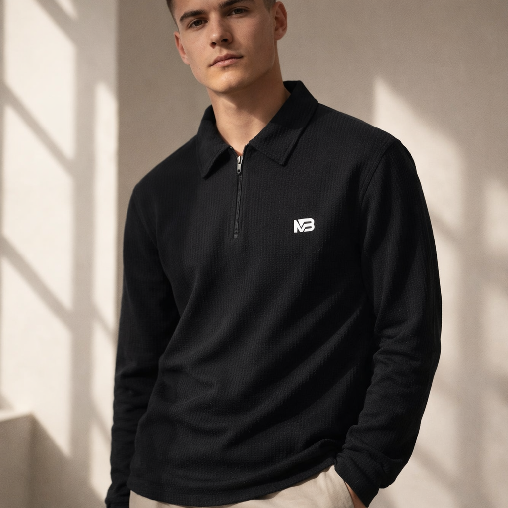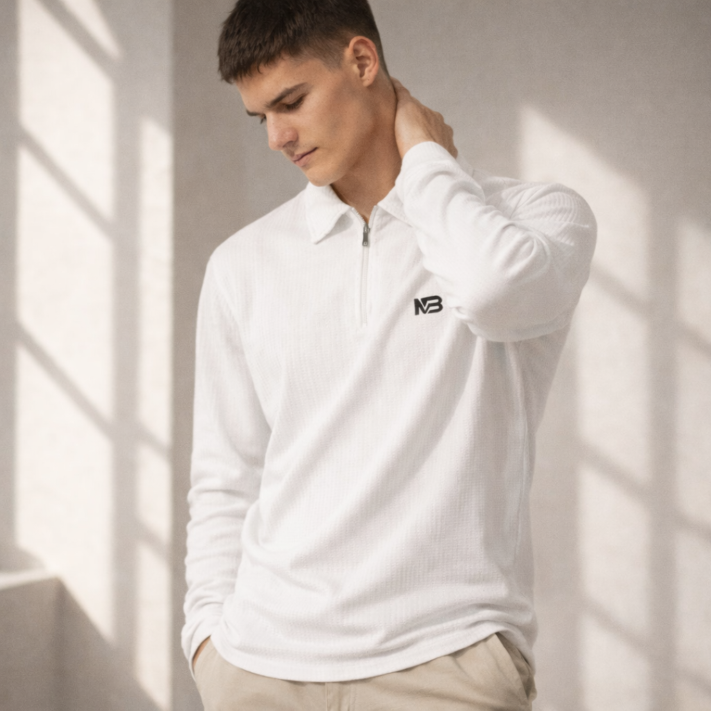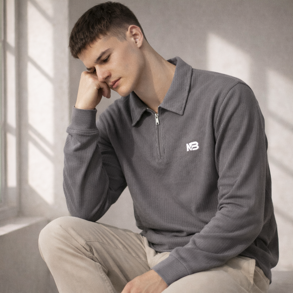 Elevate your casual and smart-casual attire with the Premium Peanut Fabric Full Sleeve T-Shirt with Zip & Collar. This shirt is crafted from a luxurious, textured ribbed knit fabric (often referred to as ‘peanut’ knit for its soft, slightly structured texture) that offers superior comfort, breathability, and a modern aesthetic. The long sleeves make it an ideal choice for cooler weather or for a sophisticated layered look.
